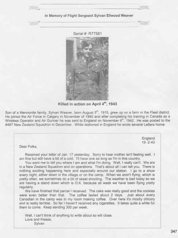Memoir for Sylvan Ellwood Weaver Born August 5, 1915. Killed in action April 4, 1943.