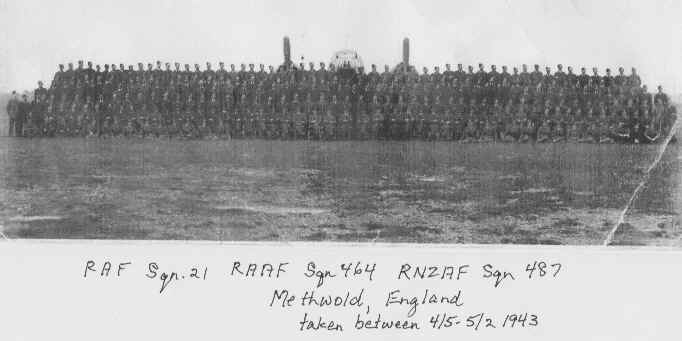 Our Squadron - R.N.Z.A.F. (Royal New Zealand Air Force) had just been formed Aug. 15, '42 and R.A.F. Sqn. #21 moved from Bodney to Feltwell to train our Sqn. #487 and Sqn. #464 of the Royal Australian Air Force. The R.A.F. Sqn. 21 was stationed at Methwold in the countryside 3 miles north of Feltwell. Don Palmer a local farmer there remembers the sudden influx or Aussies and New Zealanders. His Dad had managed a farm in Australia before the war, and when that fact became common knowledge at the camp, a lot of the airmen started visiting the farm. A lot of them had been farm boys so they showed up at milking time to help Don. Sometimes there were so many of them there were hardly enough cows to go around!