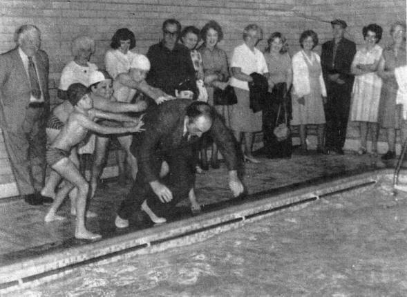 opened with a splash yesterday as the headmaster tumbled in. It was all in good, clean fun as the aptly named Mr Don Feltwell took an early bath in front of staff, pupils and school managers at the official opening. The heated indoor pool, 60 ft by 25 ft. and up to 5 ft 6 in. deep, has been paid for by the Sir Edmund Moundeford charity trust. It cost over £80 000. The chairman Mr. E. W. Porter handed over the building's keys to the chairman of Norfolk Education Committee, Mrs Judith Walpole, yesterday. She in turn told parents, staff and pupils: "I am particularly pleased that the pool will be used by other schools and by the community." Mr Feltwell said he had formed a swimming association in the village and already 170 people had come forward to use the pool after school hours. The pool, built be Anglia Pools Ltd., of Norwich, will hold up to 30 people at one time and pupils from Hockwold and Methwold have been invited to use it regularly. It has been paid for by the Trustees who manage 560 acres of fenland. Mr Porter said it was their biggest project to date, although they had provided office equipment at the school previously. |