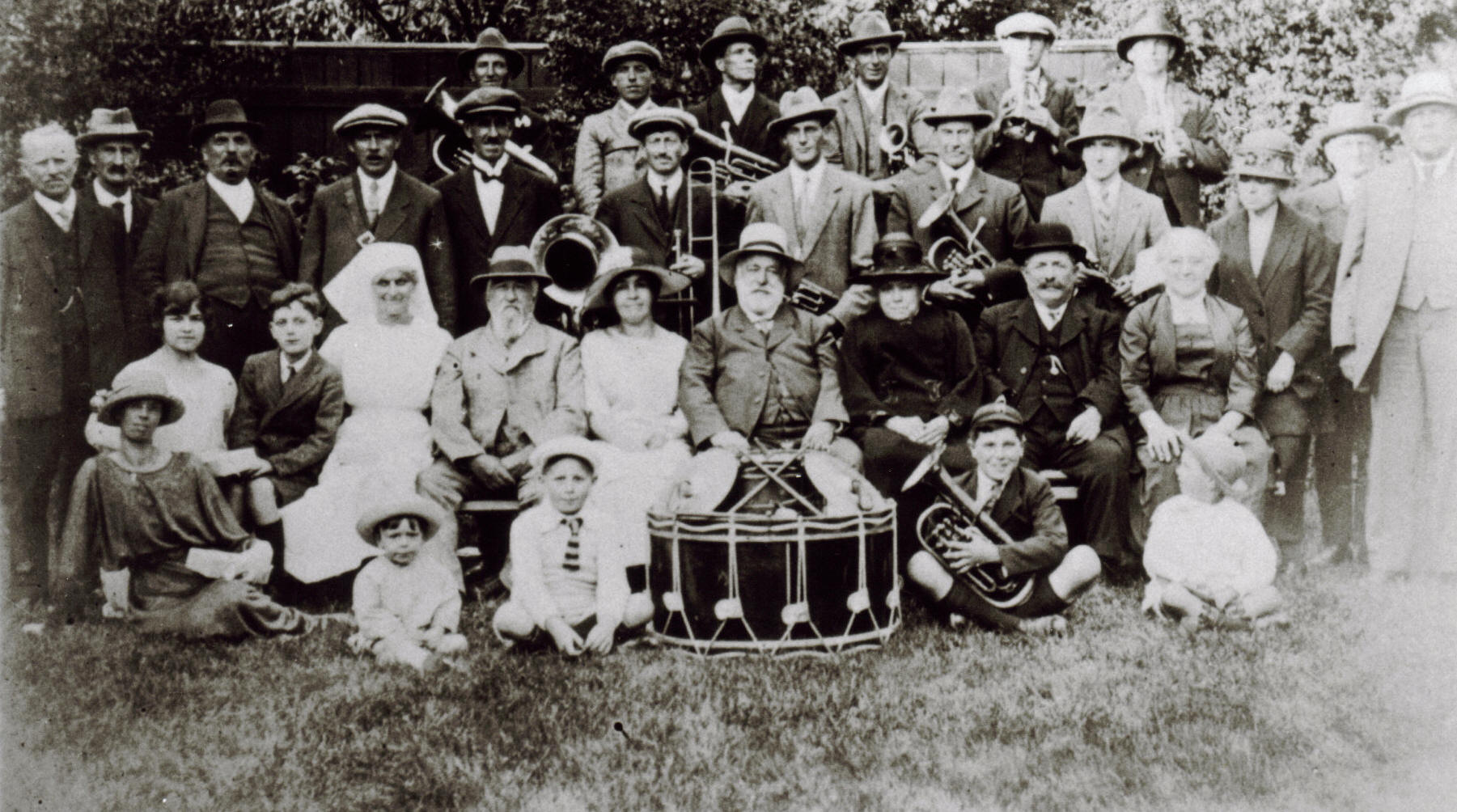 Cock, ?, ?. Middle Row: William Bensley, Fred Payne, John Willet, Walter Beamis, Jack Roper, Robert Howlett, Francis Rudland, ?, Miss Knight, Alfred G. Symonds, ? Porter. Front Row: Mabel Payne (?), ?, Mrs Curtis, Lemon Payne, Mrs Payne, Horace King, ?, ?, Mrs Bensley. Sitting: Blanche Rolfe, ?, ?, ?, ?. |