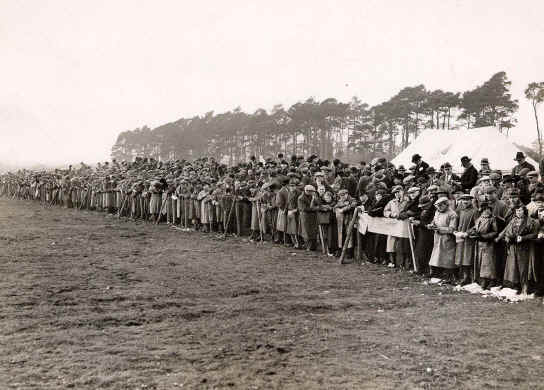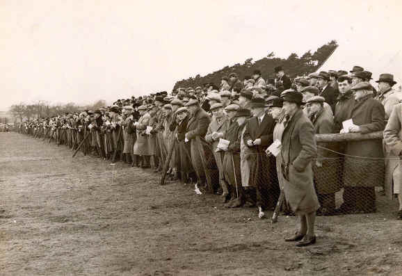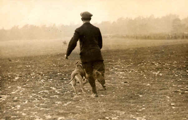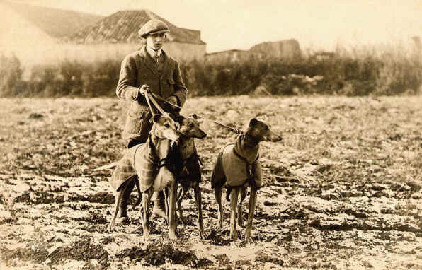 One country pursuit which seems to be on its way out is the Coursing Match. The Feltwell Coursing Matches were held on the Heath every year on the two days following Christmas. As the last of these took place over twenty years ago and we may never see another, I will explain briefly what was involved. On each of these mornings a line of beaters was strung out along Wilton Road and these men, armed with sticks, then walked slowly over the land, driving hares eastwards up to the Heath where the hares were guided into a wire-netting enclosure. Once the match started a hare was released and simultaneously two dogs were "slipped". The hare was chased by the dogs until it either got away or was caught, while the judges in their colourful "pinks" rode horse-back. This was a very popular sport, lots of money changed hands and large crowds were drawn from a very wide area. The beaters were paid 7/6 - 10/- each for about two hours work,