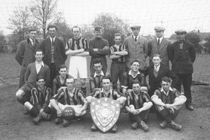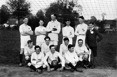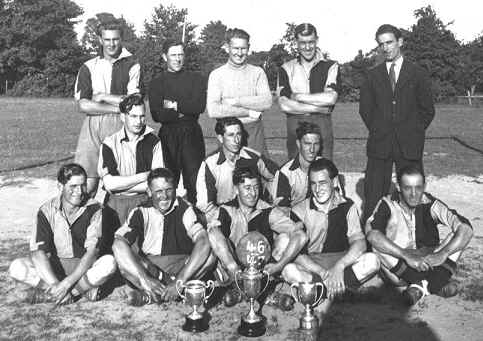 Team from the 1946-47 football season. The three cups are the Mundford, Feltwell & Southery cups. |