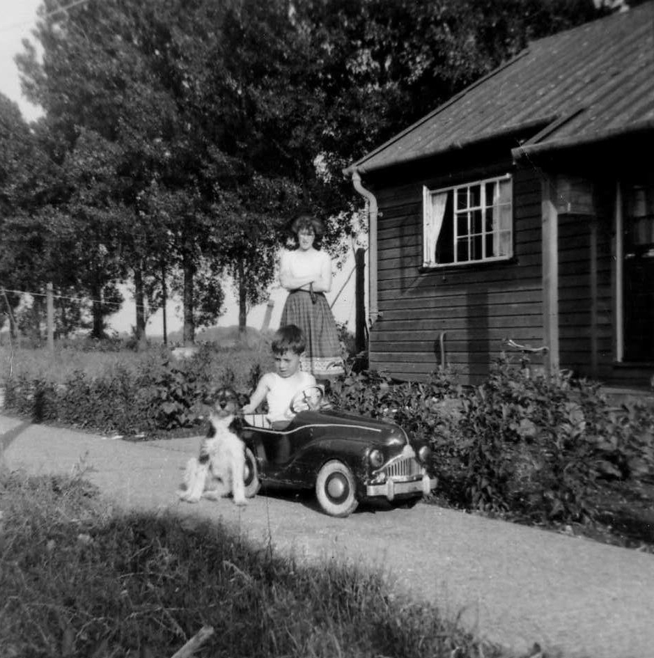 Clive and cousin Michael riding Clive's first horse, 1960 |