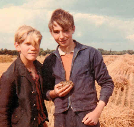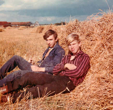 But by the time harvest came around in 1966 Jim and I had been joined by another friend (and Ken’s son) Terry. Jim’s brother Richard was less fortunate as he was the sole young hand employed by the Rices at Home Farm and was probably worked harder than us without as much fun. We were now 16 and riding our scooters and motorcycles – and also taking a turn at driving the tractors. When the Combine needed to empty its tank of grain we had to take the trailer with the holding tank to it, passing under the auger which was tilted up at an angle of 45 degrees with its spout pointing 45 degrees down. The top of the tank was some 4ft above our heads yet there was only a few inches leeway either side of the perfect line: if the tank was too close it hit the auger and too far away, the spout would not reach it. I am sure all 3 of us nudged the auger at least once!