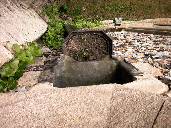 A blocked downpipe on St Marys' Church. Please support the RAISE the ROOF appeal by buying a slate (£5) or a nail (£1)