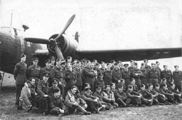 Crew of L – London of No. 75 Squadron Alan, J. J., Pete Gunning & three unknown. Taken April 1942 | Aircrew of No. 75 Squadron | L-R Squadron Leader Ray Newton RNZAF “A”, Wing Commander Olsen RNZAF Commanding Officer, Flight Lt. Frank Denton “B”. Photo taken April 1942. |