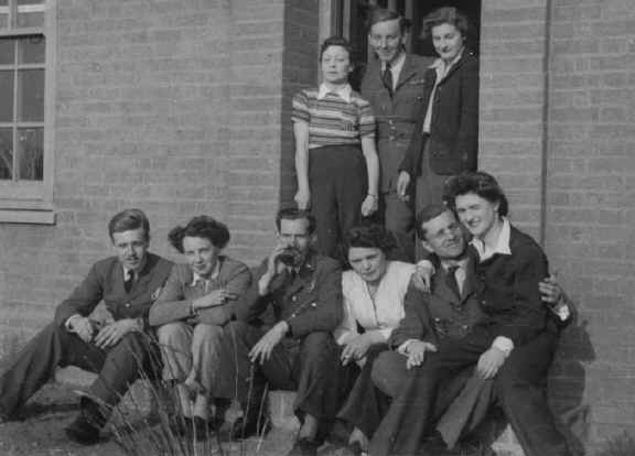 Front:- Phil (RCAF), Joyce Pilgrim, J.J., Irene King, Rudi (ex-Czech fighter pilot), Olga (on his knee). |