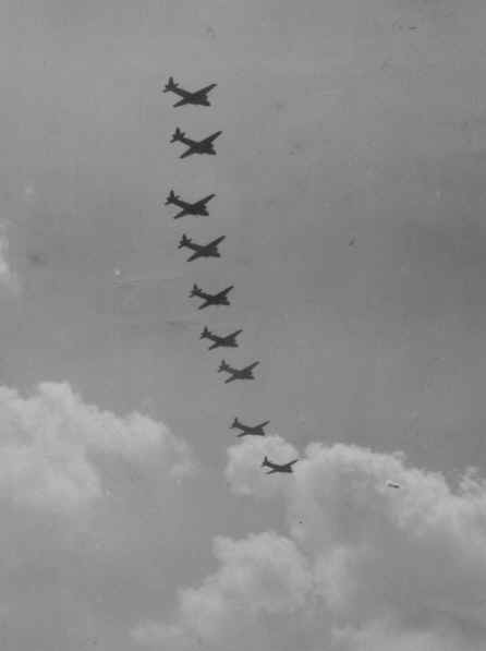 Mk1 Wellington’s in Line Astern. Photo taken at RAF Stradishall and dated 30th June 1939. | V-Victor of No.75 Squadron at RAF Feltwell. Captioned “My plane & I. From Ron” Ronnie Soo (John Sandys crew). |