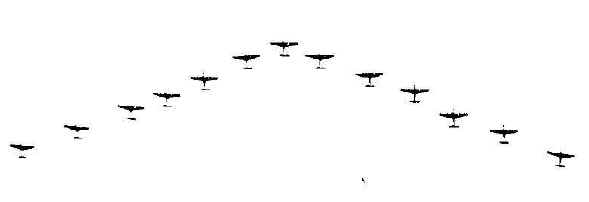The training was superb. On the principle that you only learn from your mistakes these heroes intervened only at the very last minute to forestall the dire results of a pupil’s error. They bonded with all our different personalities to build in us all a feel for the seat of the pants basic skills, creating a confidence in handling the aircraft to its limits. And they insisted on very precise and accurate flying. The need for this was evident when flying in close formation, in instrument flying in a crowded circuit at night, in tail chasing and low flying. | ||