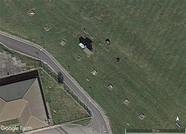 [Google Earth image of the eight concrete antenna bases at RAF Feltwell probably used in 440-L]