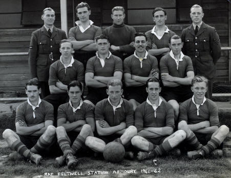 RAF Feltwell Station Armoury 1941-42 My father is in the back row 2nd in from right, as you look at picture. His name is James (Jim) O'Neill. I know he was playing football early in the war but I understand he was Injured in a air raid and later took up training a football team. He is the trainer at this link? Any stories would be nice. Brian O'Neill. |