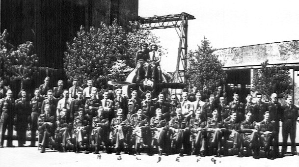 Personnel of the Repair and Inspection section, Jan 1949. The aircraft is Harvard UN999 From L to R Back Row: 'Ginger', Sid, Ken, Sgt 'Lofty' Eaton, Don, Stan Faulkner, Cpl Bob Law Front Row: Ken, Jock, Derek Routen, Dick Fallows, 'Pinkie' (WAAF), Geoff, 'Geordie' Williams, Bill Bond, John Etheridge. From Derek Routen. |