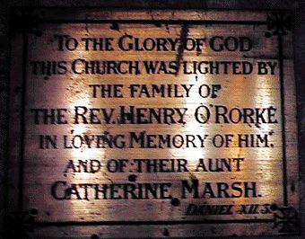 A plaque to the family of Rev. Henry O'Rorke and their aunt Catherine Marsh | Provided by Alison Whistler. |
