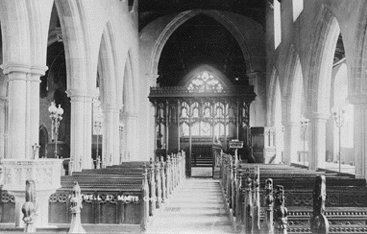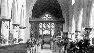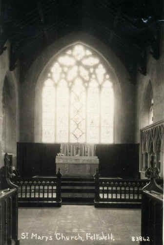 The East window provided by Canon Sparke and built by Dedron of Paris. Posted 1922. | To view the stained glass windows click here. |